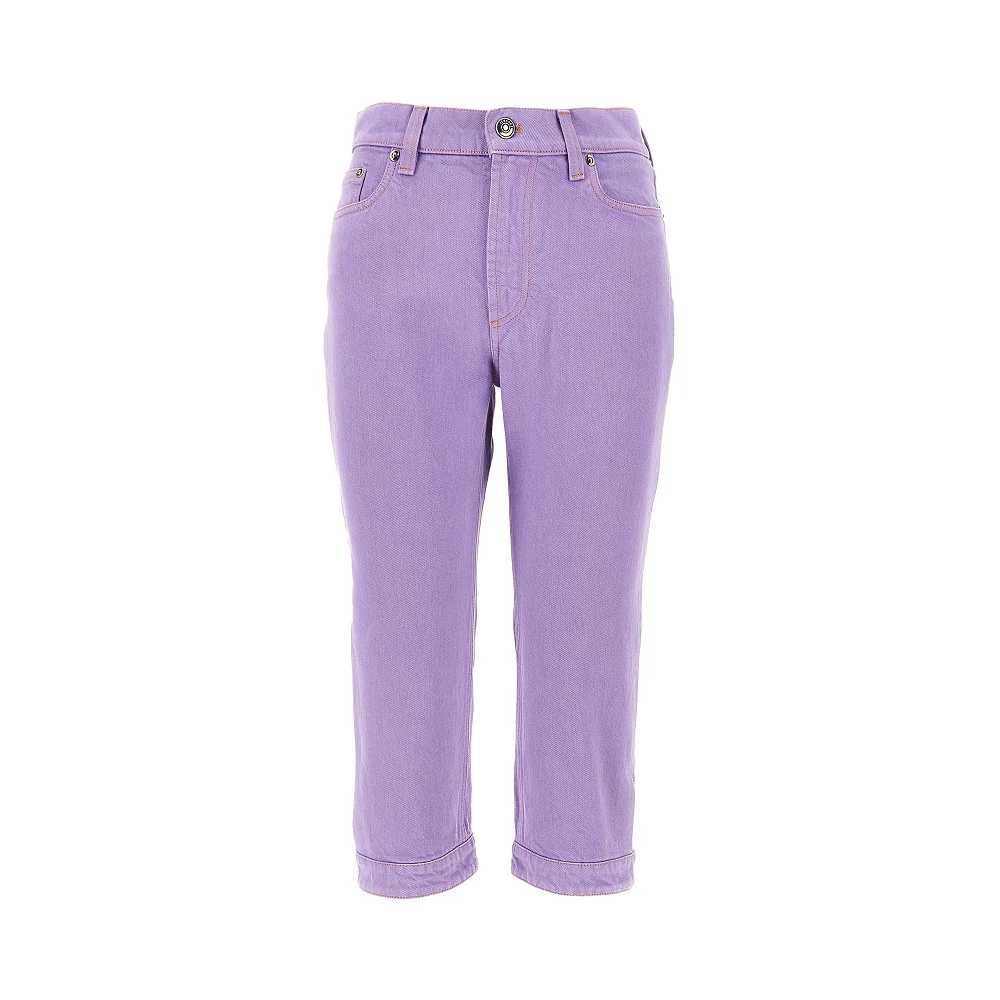 Jeans capri cinque tasche realizzati in denim di puro cotone con impunture a contrasto. Passanti per cintura, patta con zip e chiusura con bottone logato. Salpa logo in pelle con dettaglio Medusa in metallo finitura argento anticato sul retro della vita. Fondo gamba con cinturino. Vestibilità slim.