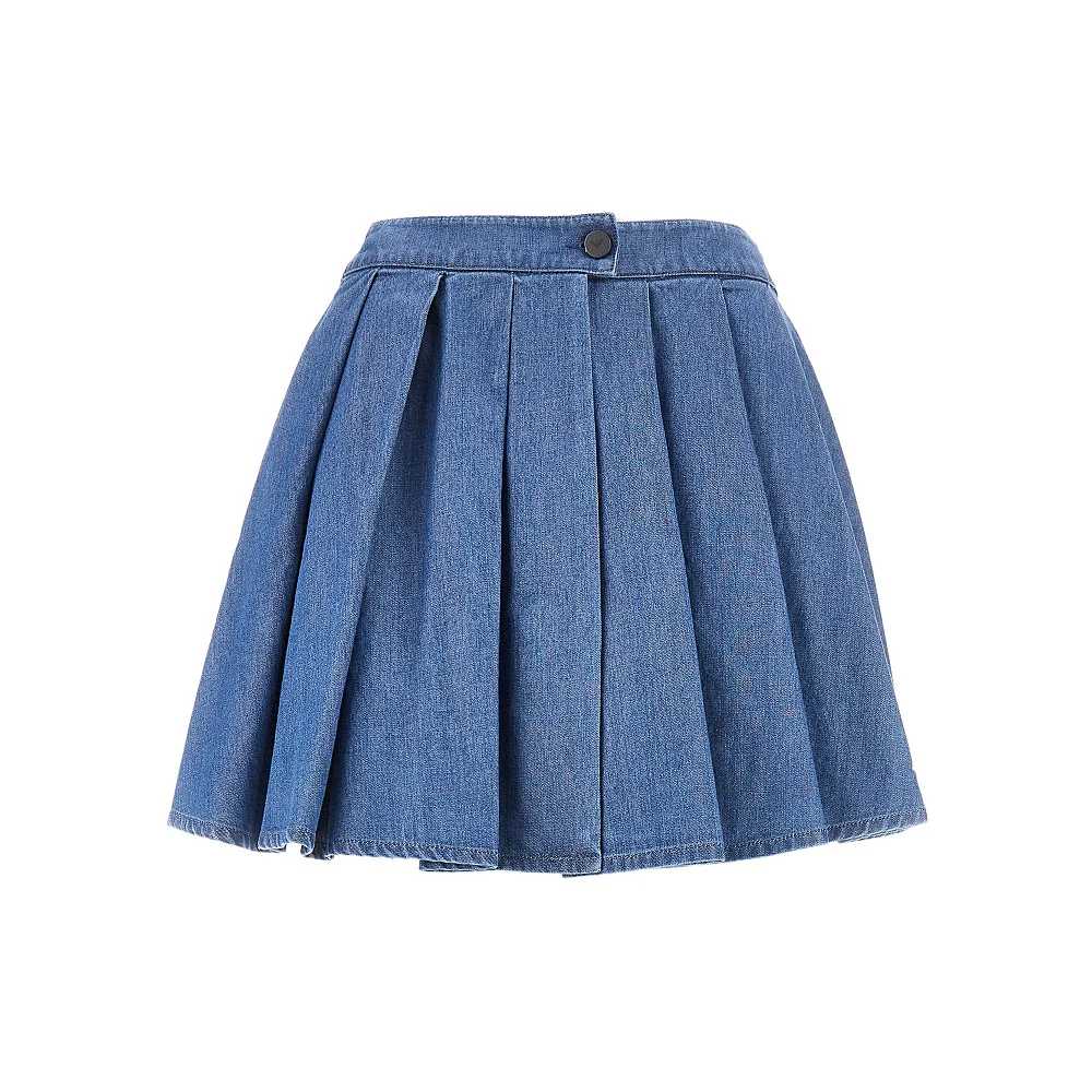 Shorts realizzati in leggero denim lavato di puro cotone, caratterizzata dai pannelli a pieghe sul davanti che creano l'effetto gonna. Chiusura con zip a scomparsa e bottone rivestito sul davanti. Vita medio-alta. Patch logo in tessuto sul retro della vita.