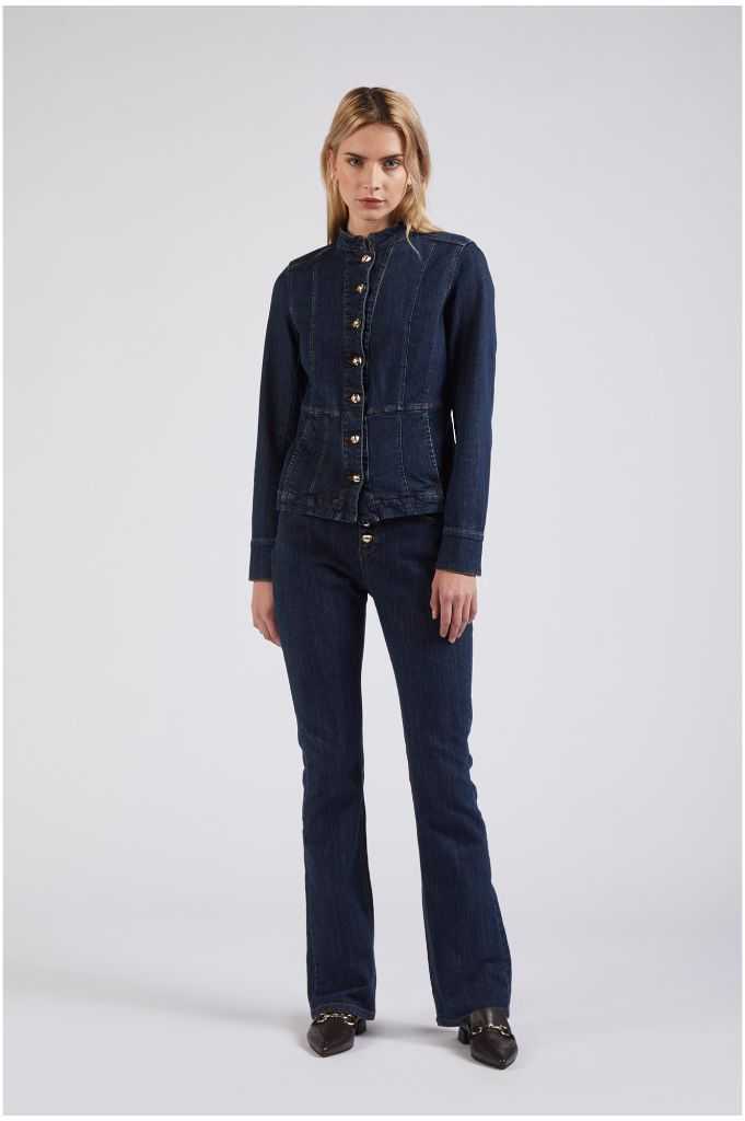 Giacca avvitata con colletto tipo biker realizzata in tela denim comfort.