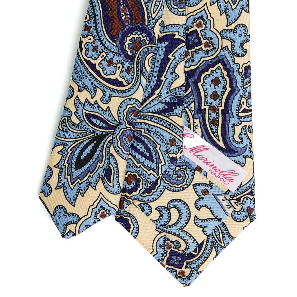 Cravatta donna classica in seta stampata con fantasia ispirata alle stampe d’archivio, rilette in chiave contemporanea. Il motivo decorativo, ricco e dinamico, dona carattere al look mantenendo un’eleganza raffinata. Perfetta per valorizzare outfit sartoriali o dare un tocco distintivo a uno stile più essenziale. Made in italy