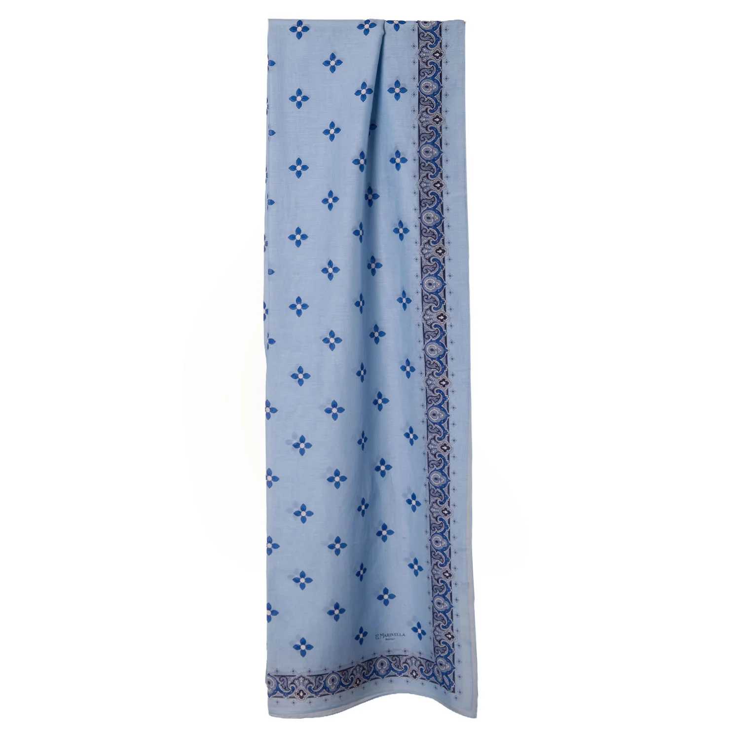 Stola in Voile di Cotone E Seta Azzurra - Greek Key Floral