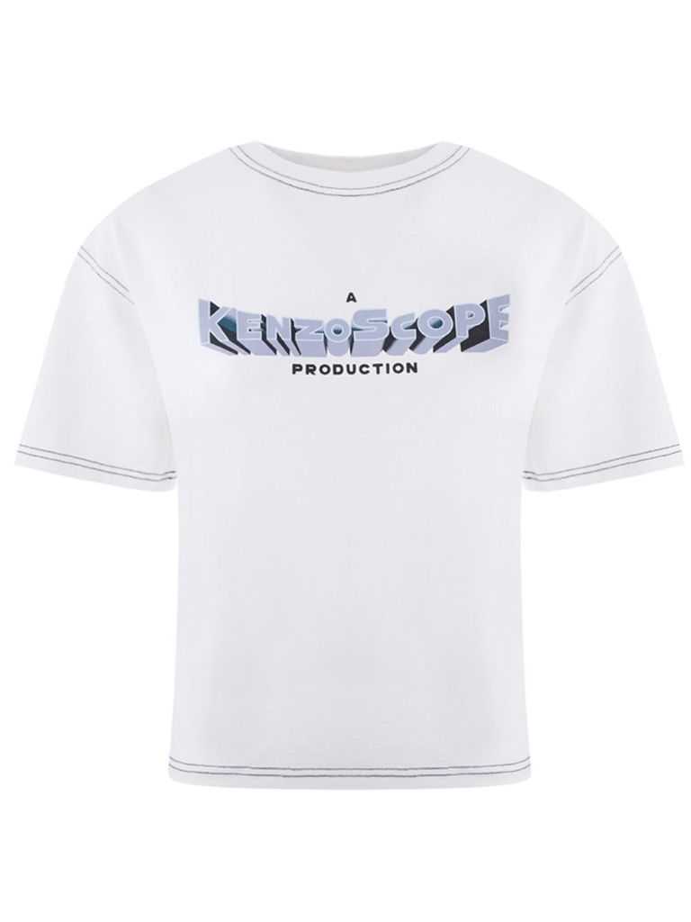 T-Shirt in Cotone bianco Kenzo con stampa frontale a contrasto KenzoScope Production. Composizione: 100% Cotone-Sku interno:23LU167Nessuna informazione disponibile