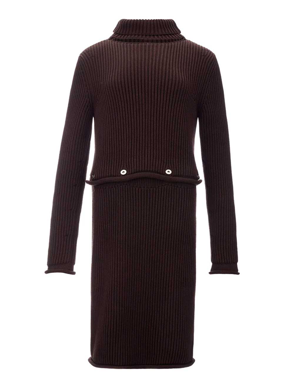 Abito Knit Chunky Cotton Bottega Veneta in marrone, lavorazione a costine. Abito composto da top removibile con bottoni a vista in metallo, collo a lupetto in parte staccato, maniche lunghe e schiena scoperta. Gonna a tubo media lunghezza e fascia elastica in vita. SKU Articolo: 571940 VA7G0. Composizione: 100% Cotone-Sku interno:23OT39Nessuna informazione disponibile