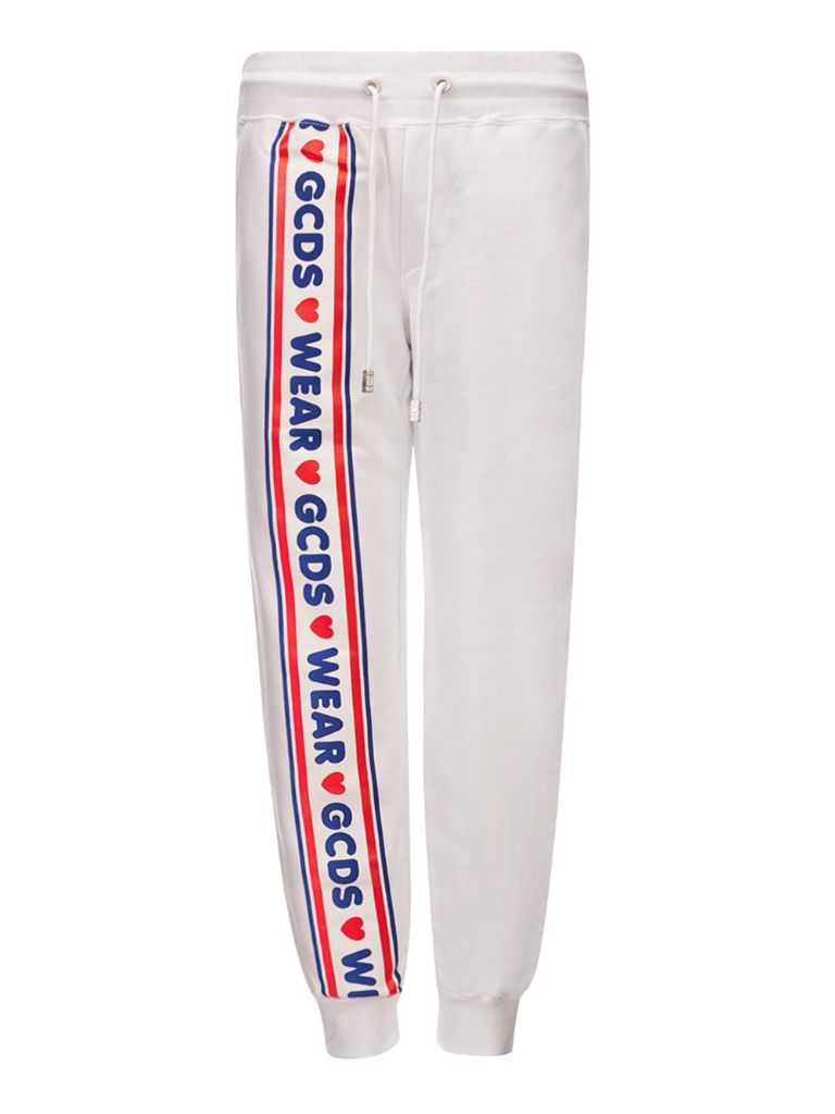 GCDS - Pantalone Tuta Bianco con Logo GCDS