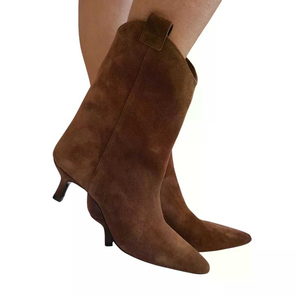 Les Poèmes Stivaletto Donna Camoscio Marrone tacco alto 5,5 cm. Rif.863