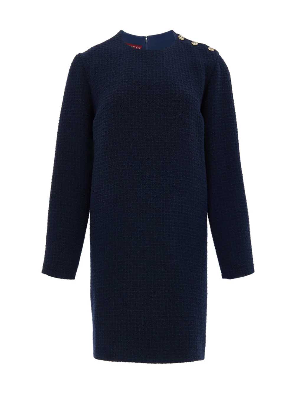 GUCCI - Abito in Bouclé Blu con Bottoni Logo Gucci