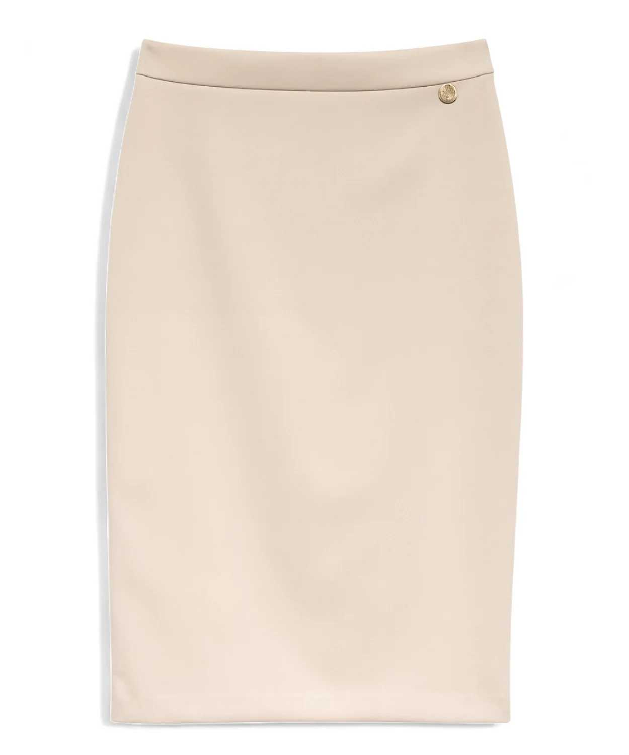 La gonna tubino Tuwe in tonalità beige è un capo essenziale, elegante e senza tempo, perfetto per completare outfit raffinati con un tocco di classe.Realizzata in tessuto strutturato e morbido, offre una vestibilità regolare che valorizza la silhouette senza costringerla. Il design pulito e minimal risulta estremamente versatile, mentre il bottone decorativo dorato posizionato in vita aggiunge un dettaglio luminoso e femminile, tipico dello stile ricercato firmato Tuwe. La lunghezza al ginocchio la rende adatta sia a look da ufficio che a combinazioni più eleganti da cerimonia o serate speciali. Perfetta da abbinare a camicie, body, bluse o blazer coordinati.