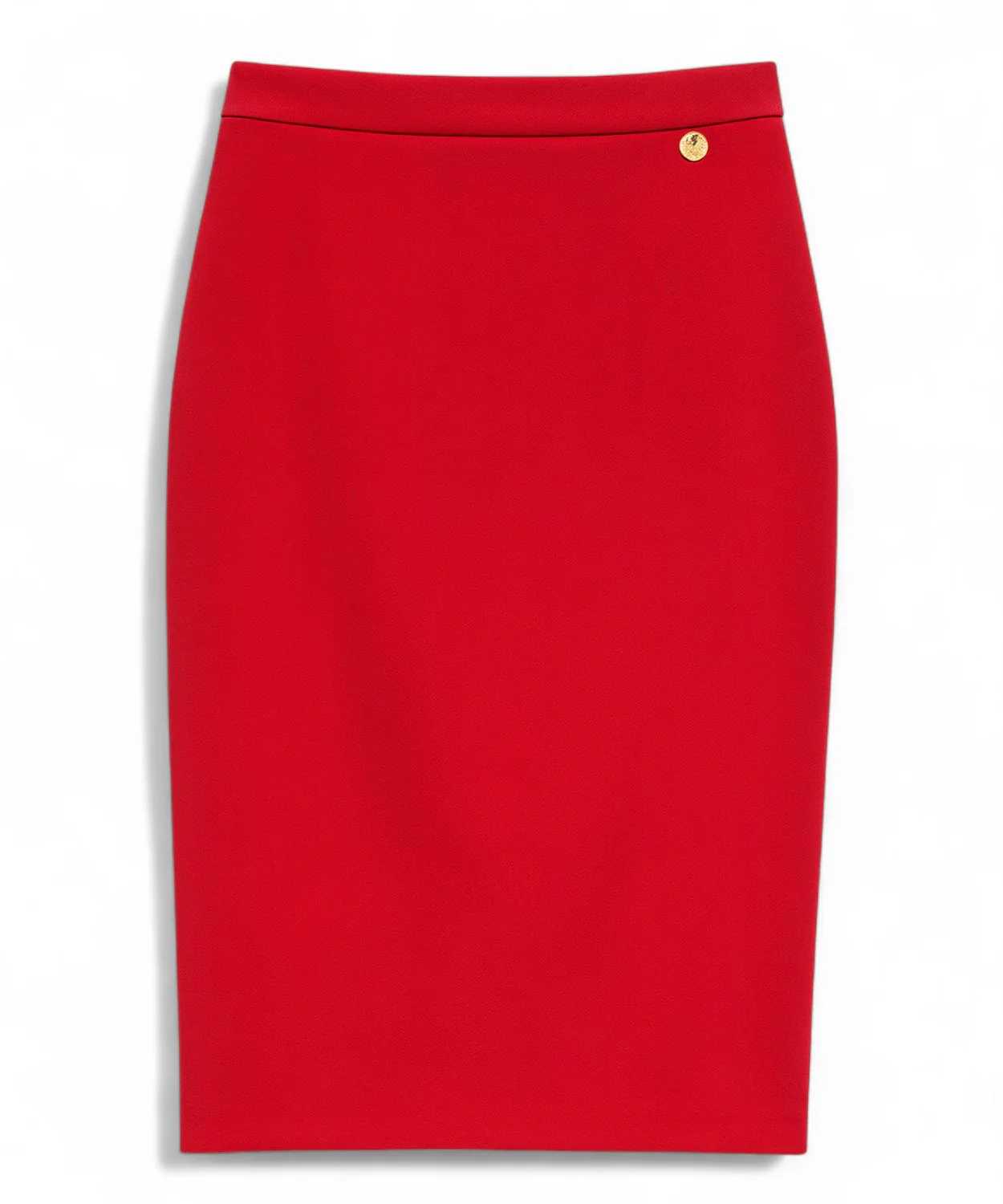 La gonna tubino Tuwe in tonalità rosso brillante è un capo elegante e dal forte impatto visivo, perfetto per aggiungere carattere e femminilità a qualsiasi outfit.Realizzata in tessuto strutturato e morbido, dona una vestibilità regolare che valorizza la silhouette con una linea a matita pulita e impeccabile. Il design minimale è impreziosito dal bottone gioiello dorato posizionato in vita, un dettaglio distintivo che illumina il capo e ne esalta l’eleganza.La lunghezza al ginocchio la rende ideale per look da ufficio, cerimonie, eventi o serate in cui si vuole sfoggiare un outfit raffinato e deciso. Facile da abbinare a bluse bianche, top neri, maglioncini slim o blazer coordinati per un completo sofisticato.