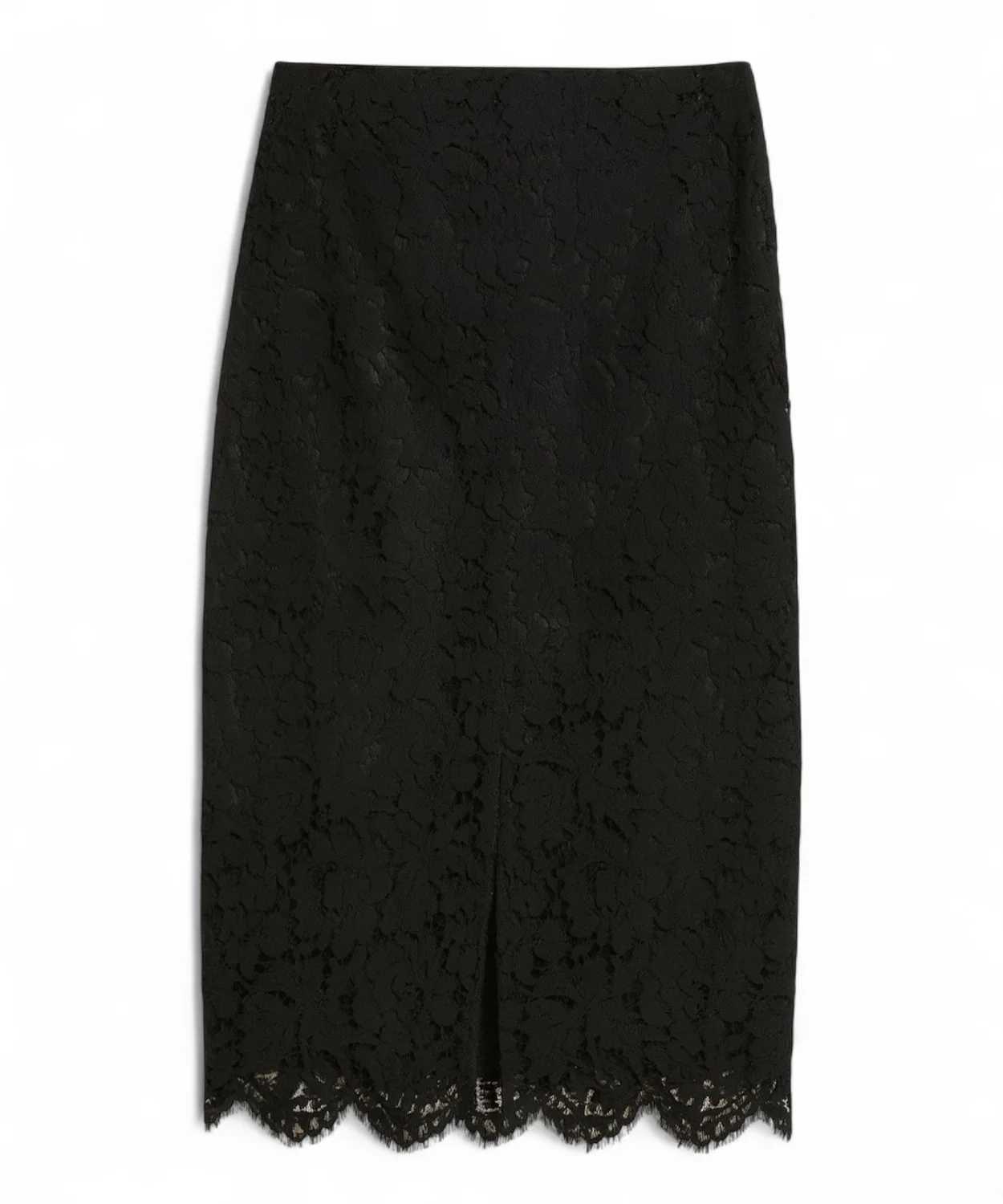 La gonna tubino in pizzo Blugirl è un capo intramontabile che unisce femminilità, raffinatezza ed eleganza contemporanea. Realizzata in pizzo floreale nero, avvolge la silhouette valorizzandola con un design aderente e sofisticato. Il fondo smerlato in pizzo aggiunge un dettaglio romantico e prezioso, mentre lo spacco frontale, discreto ma sensuale, dona movimento e rende la gonna perfetta anche per le occasioni più chic. Un modello versatile da abbinare a bluse, top eleganti o maglie fitted per look da sera impeccabili.