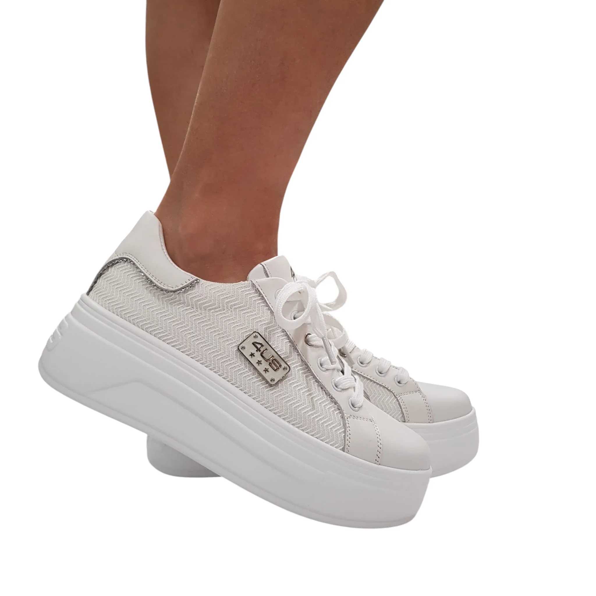 Paciotti 4US Sneakers Donna fondo gomma tacco 5,5 cm Pelle e Tessuto Bianco Rif.180