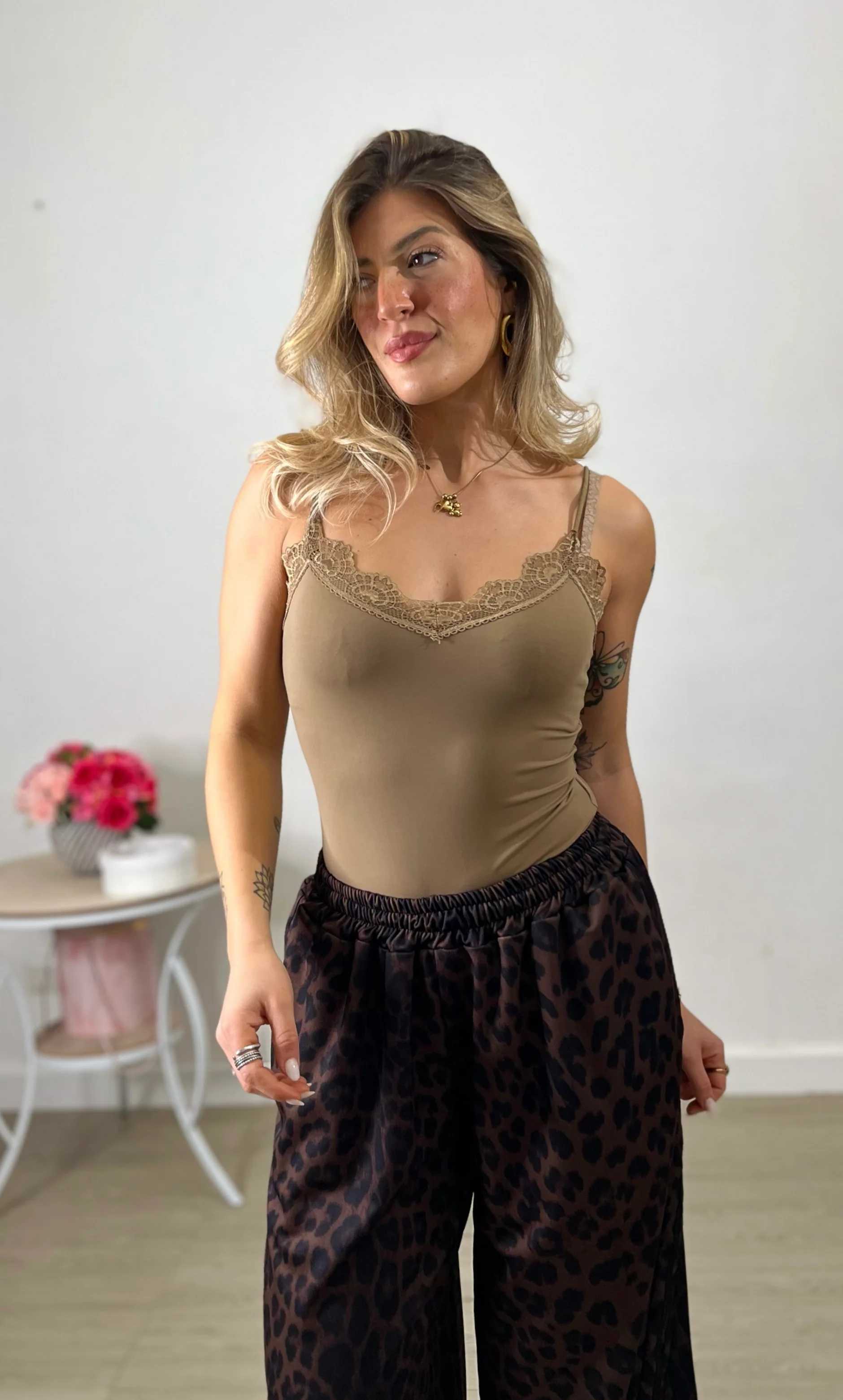 Body elasticizzato con spalline sottili. La taglia unica veste da una XS ad una L.
