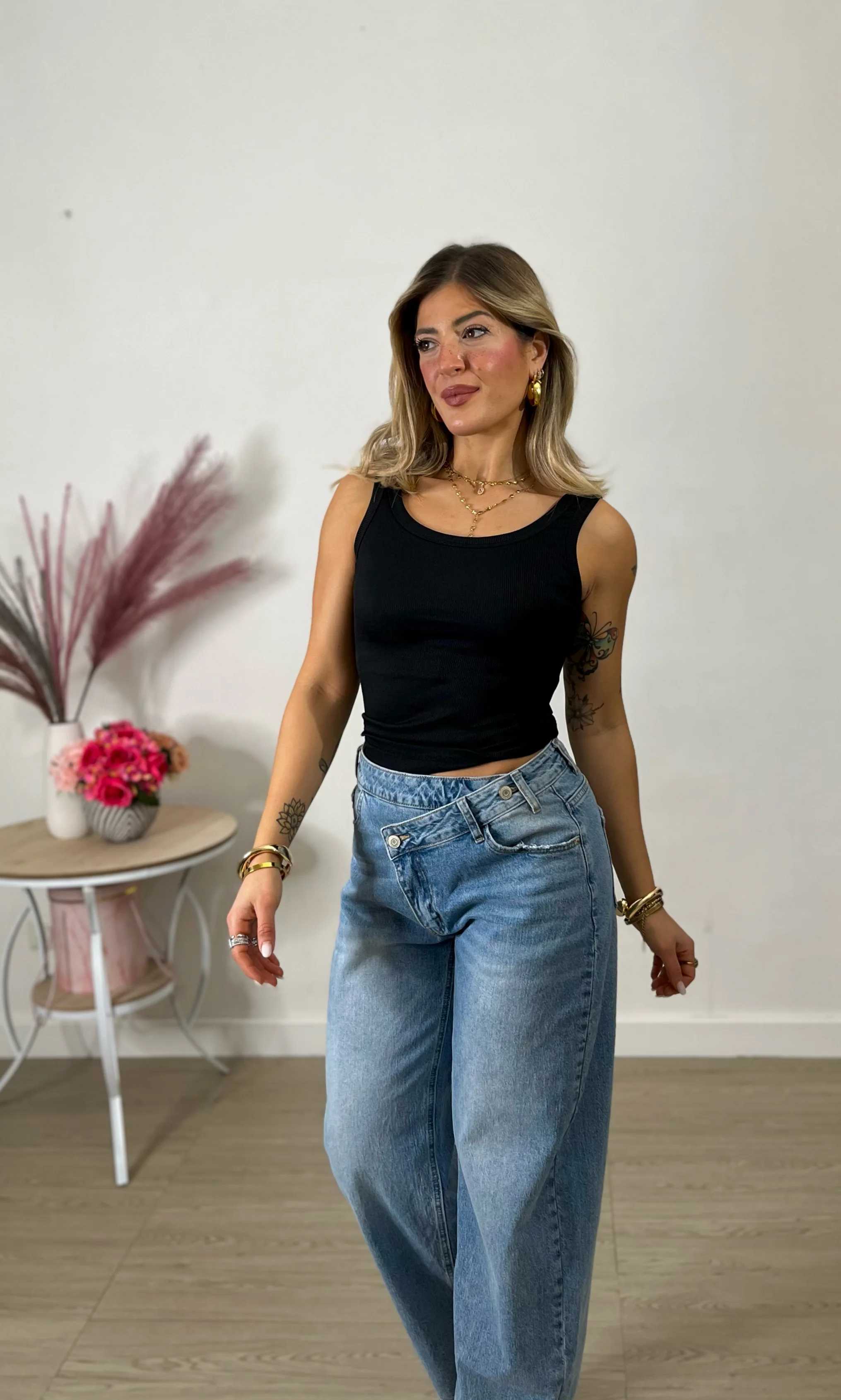 Canotta elasticizzata, taglia unica che veste da una S ad una L.