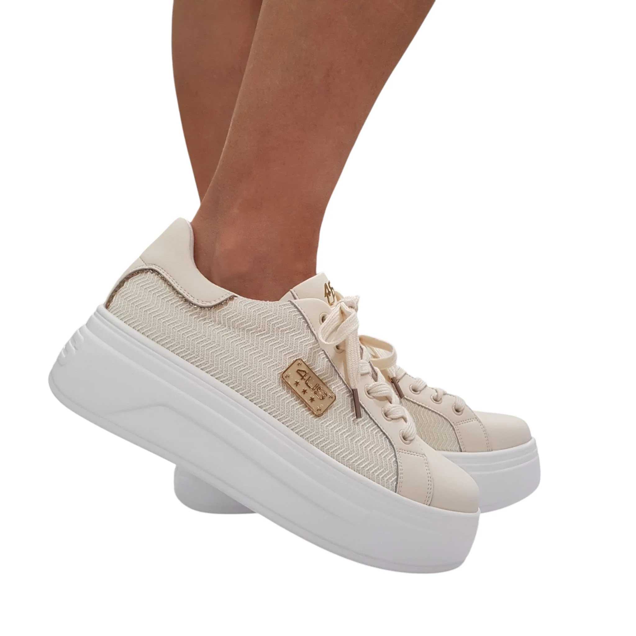 Paciotti 4US Sneakers Donna fondo gomma tacco 5,5 cm Pelle e Tessuto Beige Rif.181