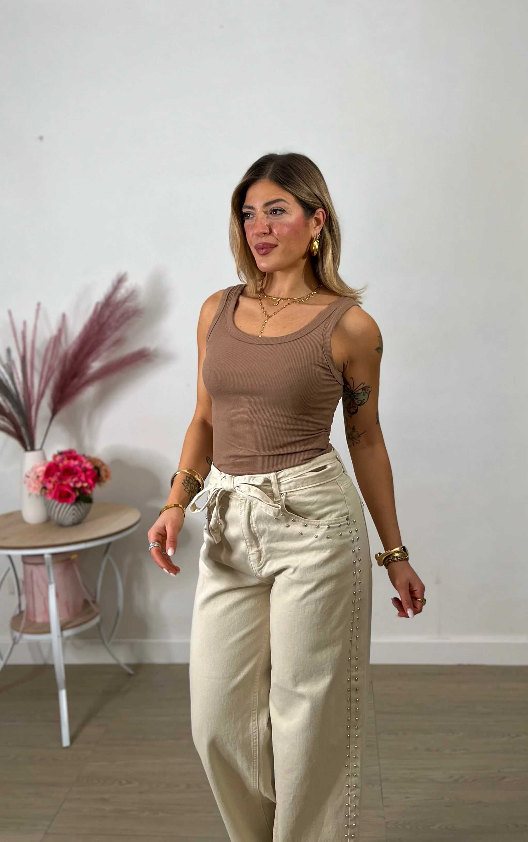 Canotta elasticizzata, taglia unica che veste da una S ad una L.