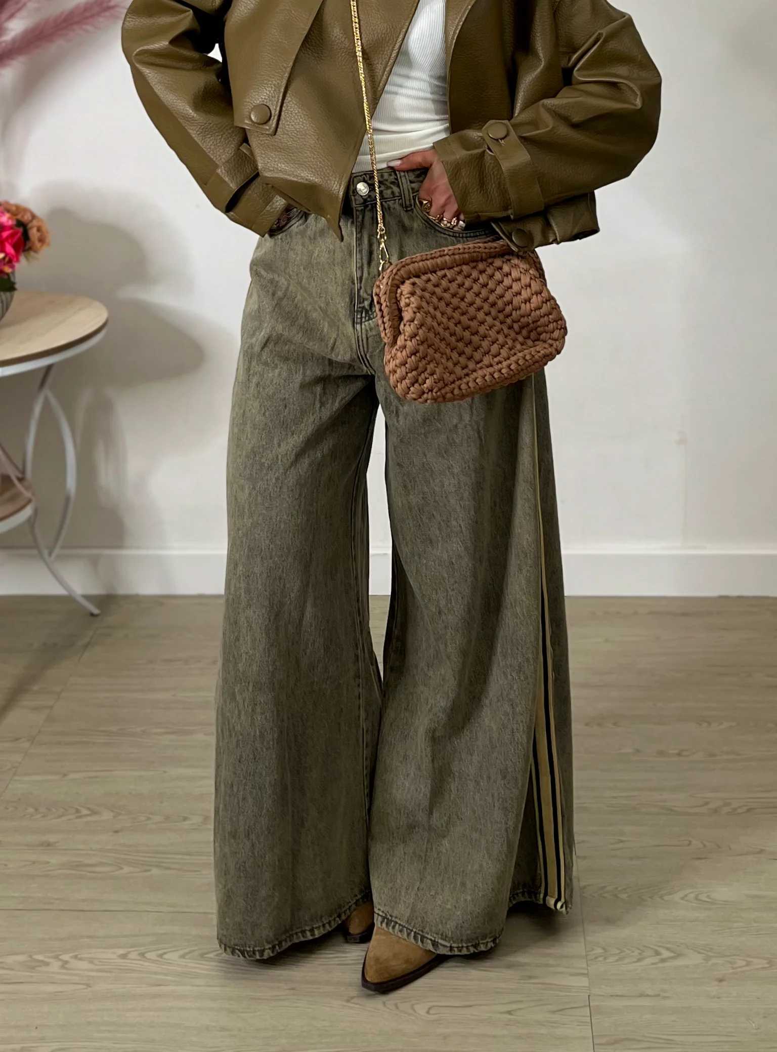 Jeans Wide Leg con banda laterale