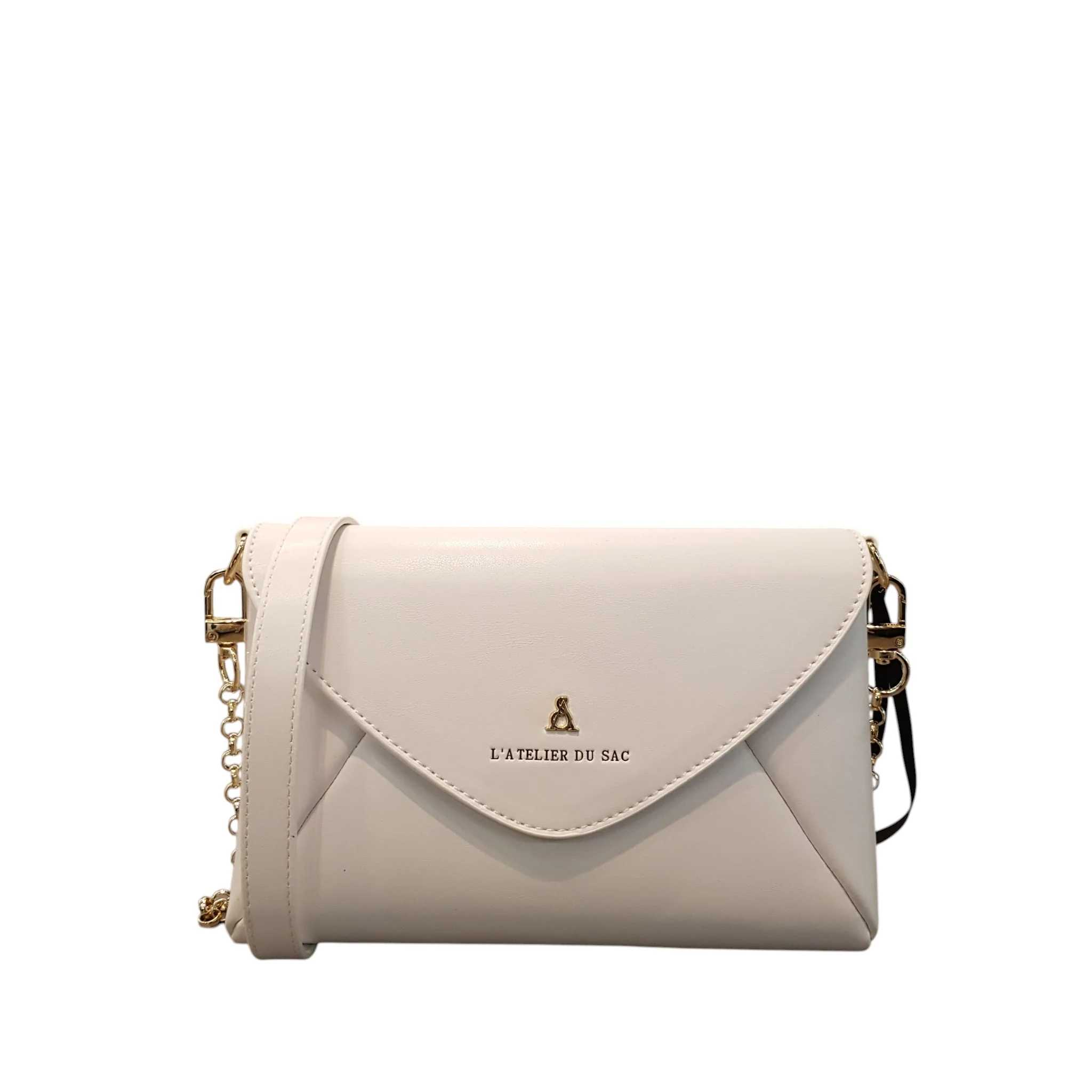 Borsa a tracolla con logo oro chiaro L'Atelier du Sac. Chiusura magnetica. Art.1074 DIMENSIONI: 22CM X 15CM X 1CM