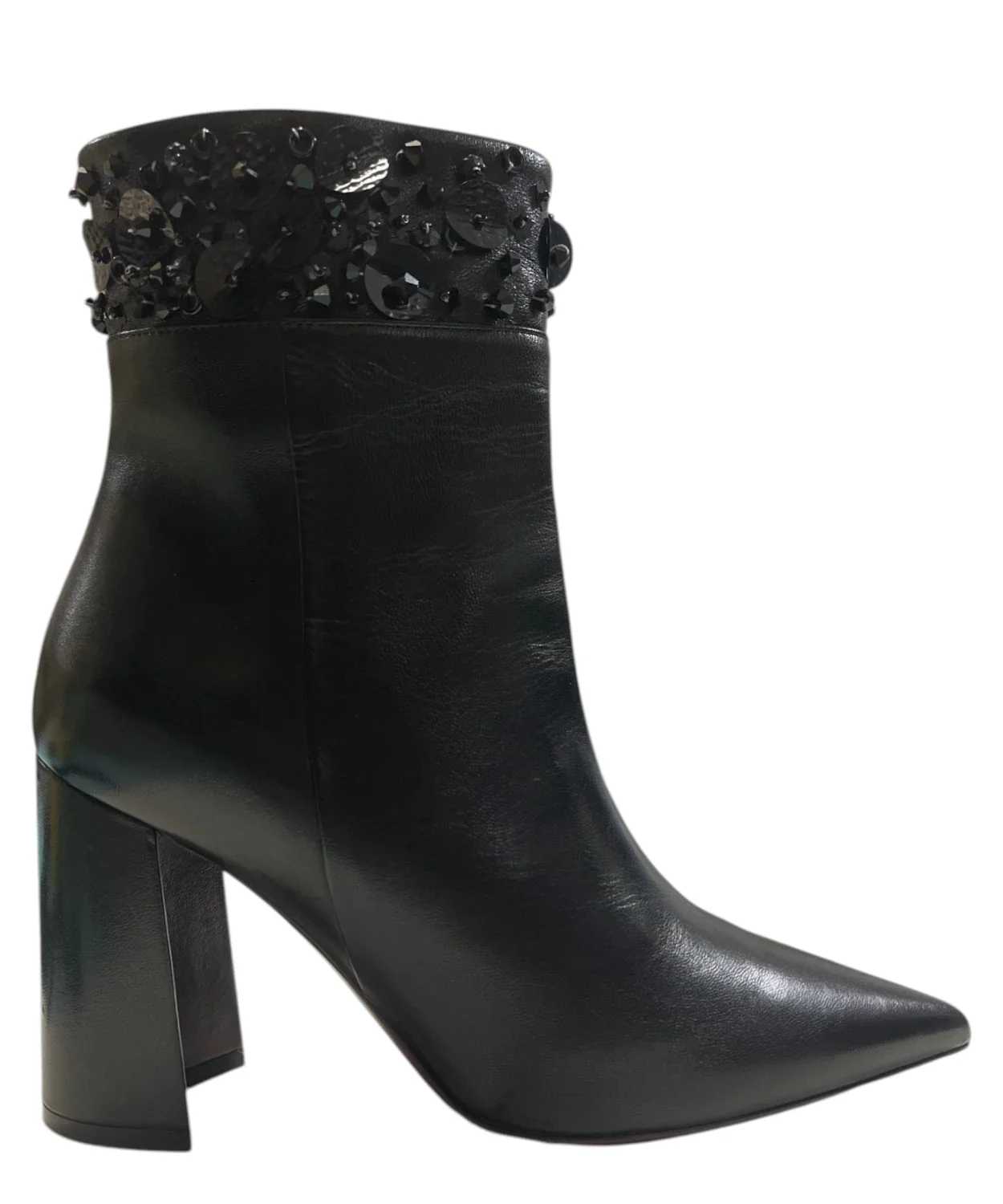 DEI MILLE - Stivaletti Neri in Pelle con Tacco Largo e Dettaglio Gioiello