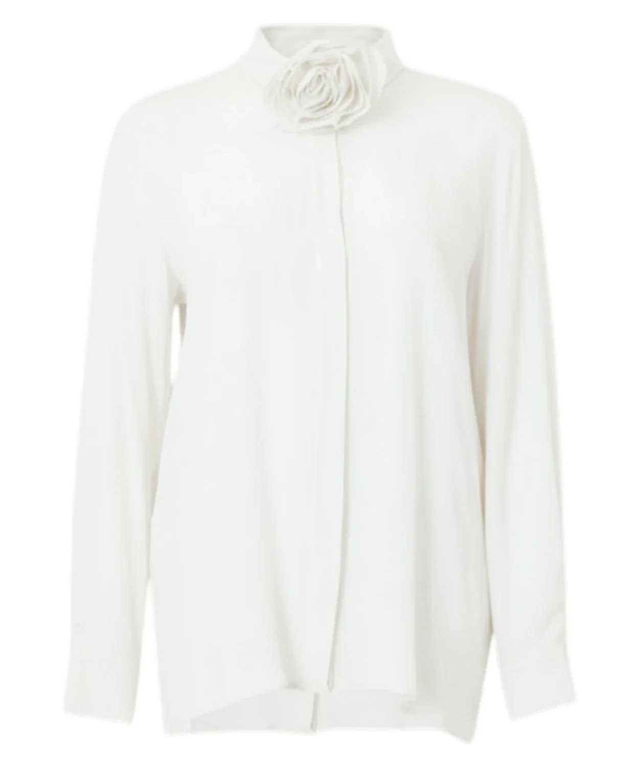 La camicia CALCA Marella in crêpe de Chine di misto seta è un capo raffinato e femminile che interpreta con eleganza lo spirito romantico della stagione. Realizzata in misto seta fluido e leggero, offre una texture morbida e luminosa che dona al look un’allure sofisticata. Il design è caratterizzato da collo classico a camicia e abbottonatura nascosta, dettagli che mantengono la linea pulita ed elegante. Il vero elemento distintivo è la fusciacca con maxi fiore in tessuto, un dettaglio scenografico che aggiunge un tocco romantico e contemporaneo al capo. Il fit regolare garantisce una vestibilità versatile e confortevole, perfetta per creare outfit eleganti e moderni. La camicia CALCA si abbina facilmente a short, pantaloni sartoriali o gonne, completando il look con una pochette o accessori minimal per uno stile sofisticato. Il tessuto principale contiene materie prime derivate dalla cellulosa del legno, una fibra ottenuta nel rispetto del patrimonio forestale, unendo eleganza e attenzione alla sostenibilità.