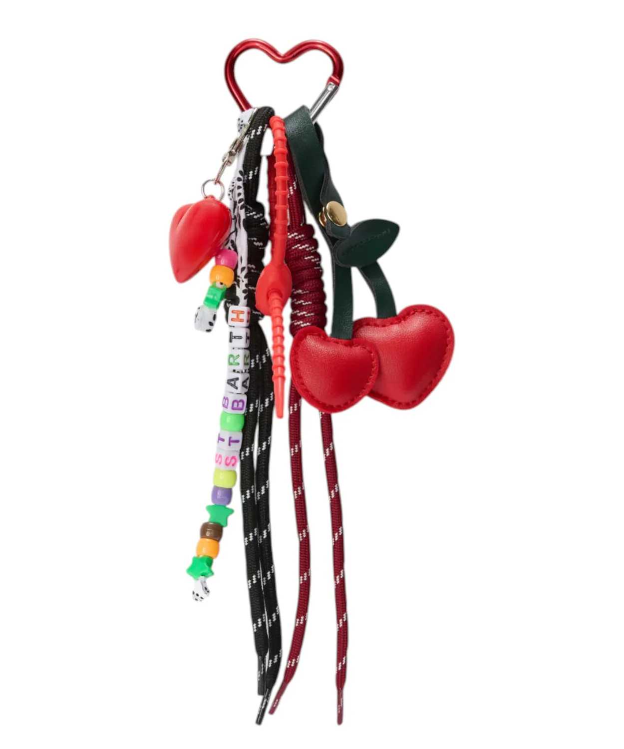 Il Funny Charm con ciliegie decorative è un accessorio originale e giocoso, perfetto per aggiungere un tocco pop e distintivo a borse, zaini e chiavi. Caratterizzato da un design multicolor sui toni del rosso, si distingue per le ciliegie decorative, protagoniste assolute del charm, abbinate a cordini intrecciati, dettagli pendenti e perline colorate con lettering logo. Versatile e pratico, questo charm decorativo può essere utilizzato sia come bag charm sia come portachiavi, permettendo di personalizzare i propri accessori con uno stile ironico e contemporaneo. Il moschettone a forma di cuore aggiunge un dettaglio ancora più ricercato e femminile, rendendo questo accessorio ideale anche come idea regalo. Perfetto per chi cerca un charm per borsa originale, colorato e di tendenza, questo modello dona carattere e personalità a qualsiasi look, trasformando anche l’accessorio più essenziale in un elemento unico e riconoscibile. Caratteristiche principali: Funny Charm decorativo Utilizzabile come bag charm e portachiavi Colore: multicolor, sui toni del rosso Ciliegie decorative Perline colorate con lettering logo Cordini intrecciati con dettagli pendenti Moschettone a forma di cuore