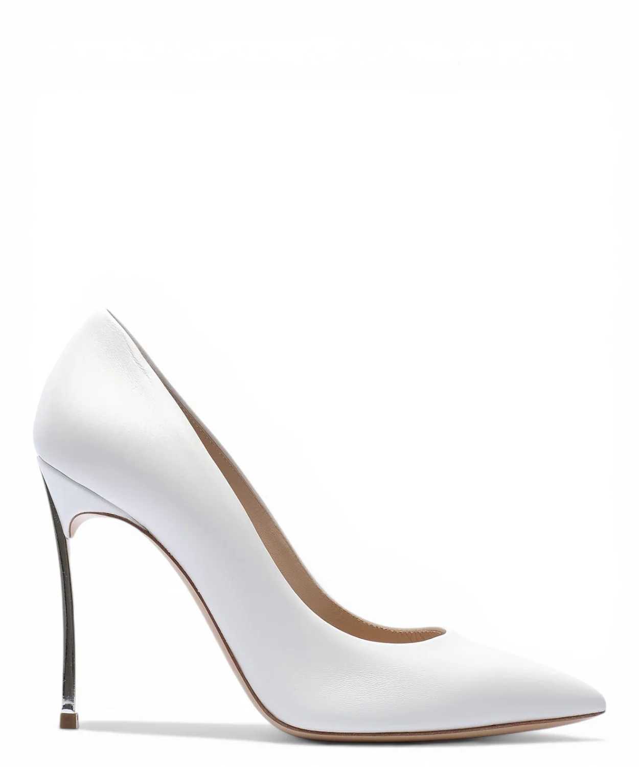 Sensuale, sofisticata e dal carattere iconico, la décolleté Blade Minorca in nappa bianca skin interpreta l’eleganza femminile con un design deciso e contemporaneo. Realizzata in morbida nappa 100% kid, avvolge il piede con una linea essenziale e raffinata, perfetta per valorizzare outfit da sera, look da cerimonia e abbinamenti eleganti dal forte impatto visivo. Il dettaglio protagonista è il celebre tacco Blade in vero acciaio da 100 mm, sottile e affilato come una lama, elemento distintivo che dona slancio alla silhouette e rende la scarpa immediatamente riconoscibile. L’equilibrio tra materiali pregiati, linea pulita e anima decisa fa di questa décolleté una scelta ideale per chi desidera una scarpa di lusso capace di unire femminilità, personalità e stile. Interamente Made in Italy, questa décolleté in pelle bianca è pensata per accompagnare occasioni speciali, serate eleganti, cene importanti ed eventi in cui ogni dettaglio fa la differenza. Un modello iconico da indossare con abiti midi, tailleur, pantaloni sartoriali o look minimal dal gusto contemporaneo.