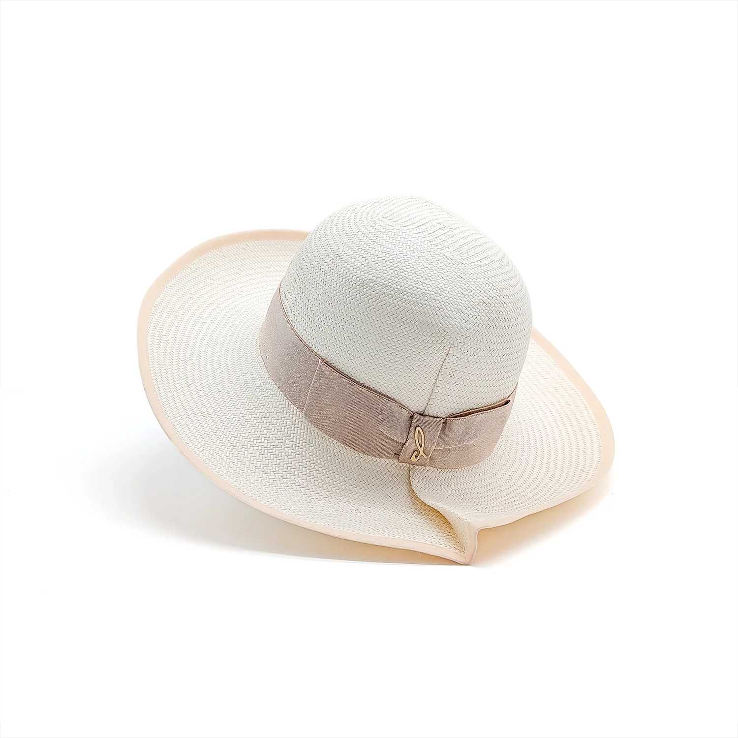 La nostra Azulina è una cloche da donna che porta in sé la grazia di un'altra epoca, reinterpretata con la leggerezza del presente. Arrotolabile, si porta in borsa e si rimette in forma con un gesto. Realizzata in Papier Giapponese color naturale, il bordo della tesa è definito da un piping rosa cipria che riprende la cinta, creando un dialogo cromatico raffinato. Logo Doria in ottone dorato. Elegante con un abito, sorprendente su un look più casual: una cloche che non scende mai a compromessi.