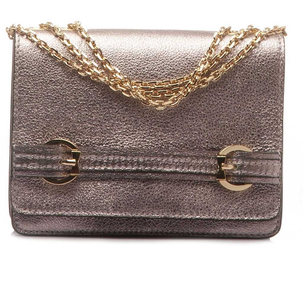 Borsa da donna Gianni Chiarini in pelle con chiusura a clip, accessori gioiello e tracolla. Colore Ceralacca. Dimensioni: altezza 16cm larghezza 20cm profondi