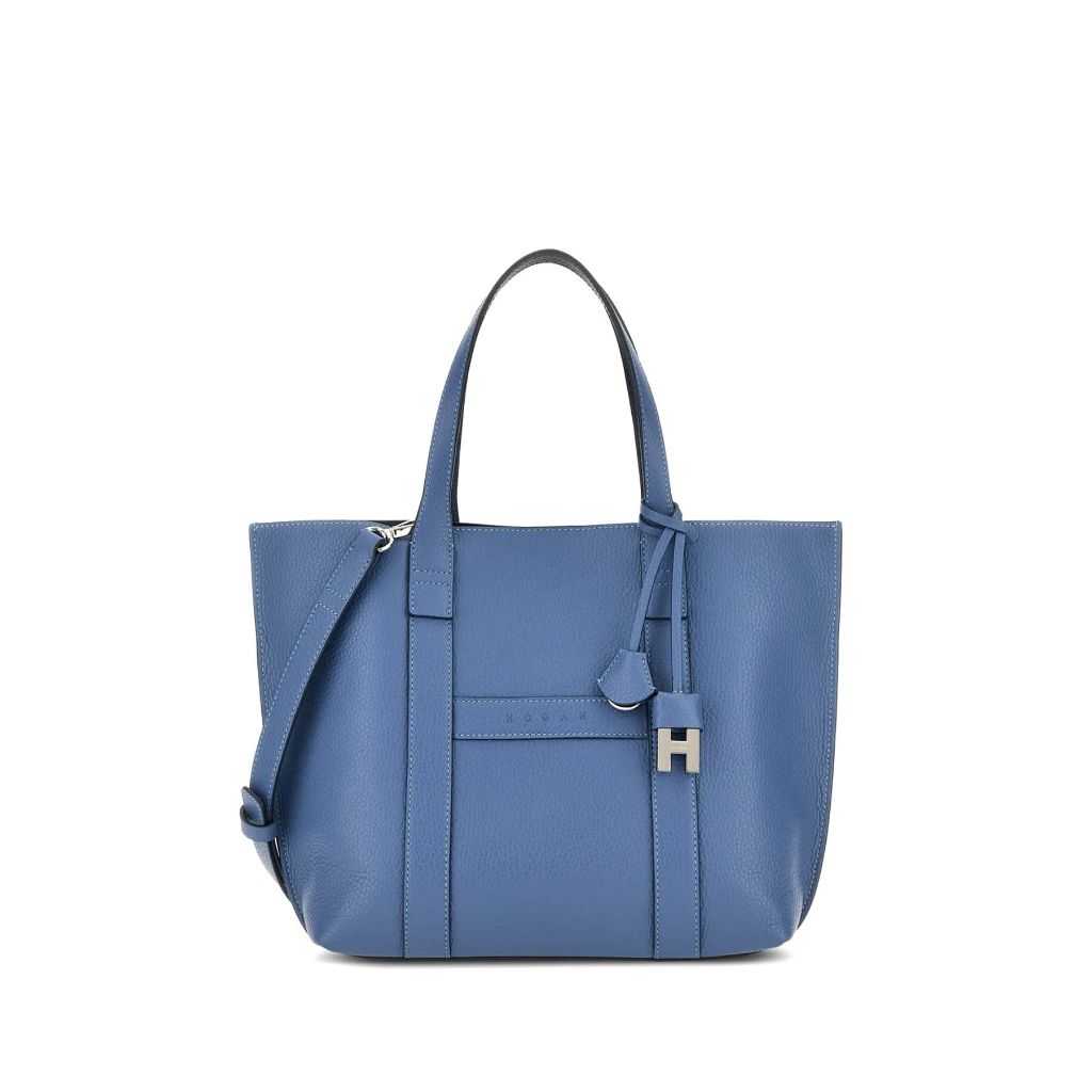 HOGAN - Borsa shopping Hogan Script in pelle martellata azzurra