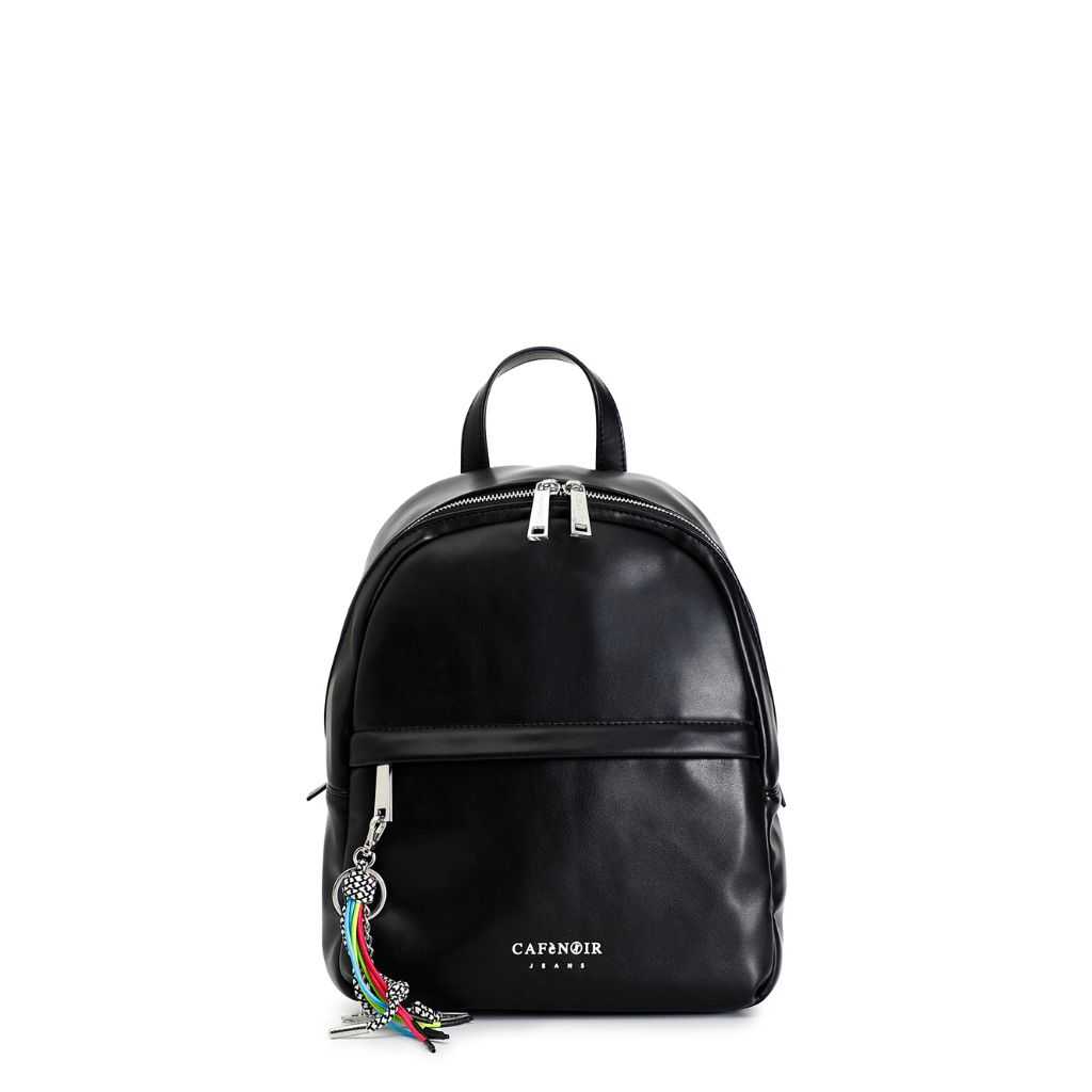 Zaino con logo ricamato e portachiavi personalizzato con charm. ampia tasca frontale con zip. zaino con unico scomparto. spallacci regolabili.