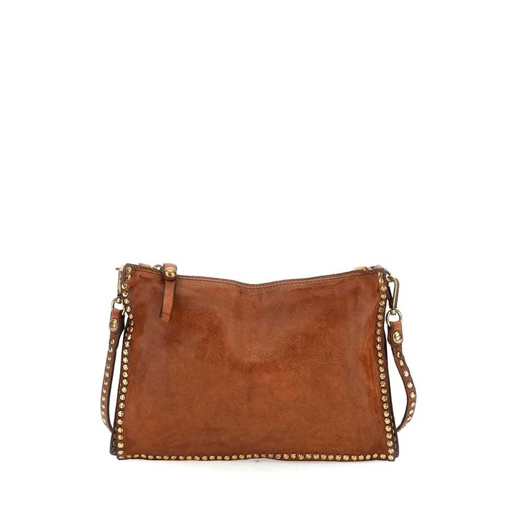 CAMPOMAGGI - Borsa bustina Campomaggi Eva cognac in pelle tinta in capo con borchie