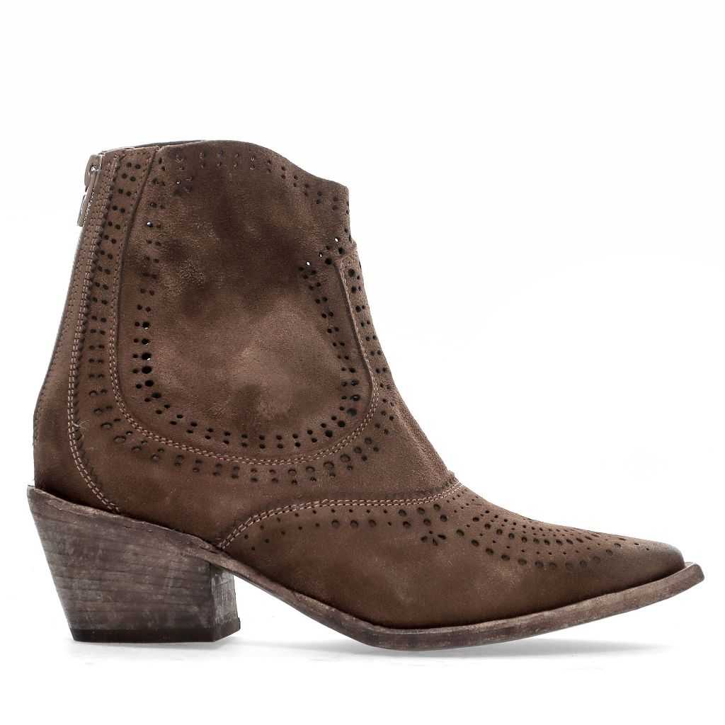 CURIOSITÈ - Stivaletto texano Curiositè in camoscio traforato marrone con tacco medio