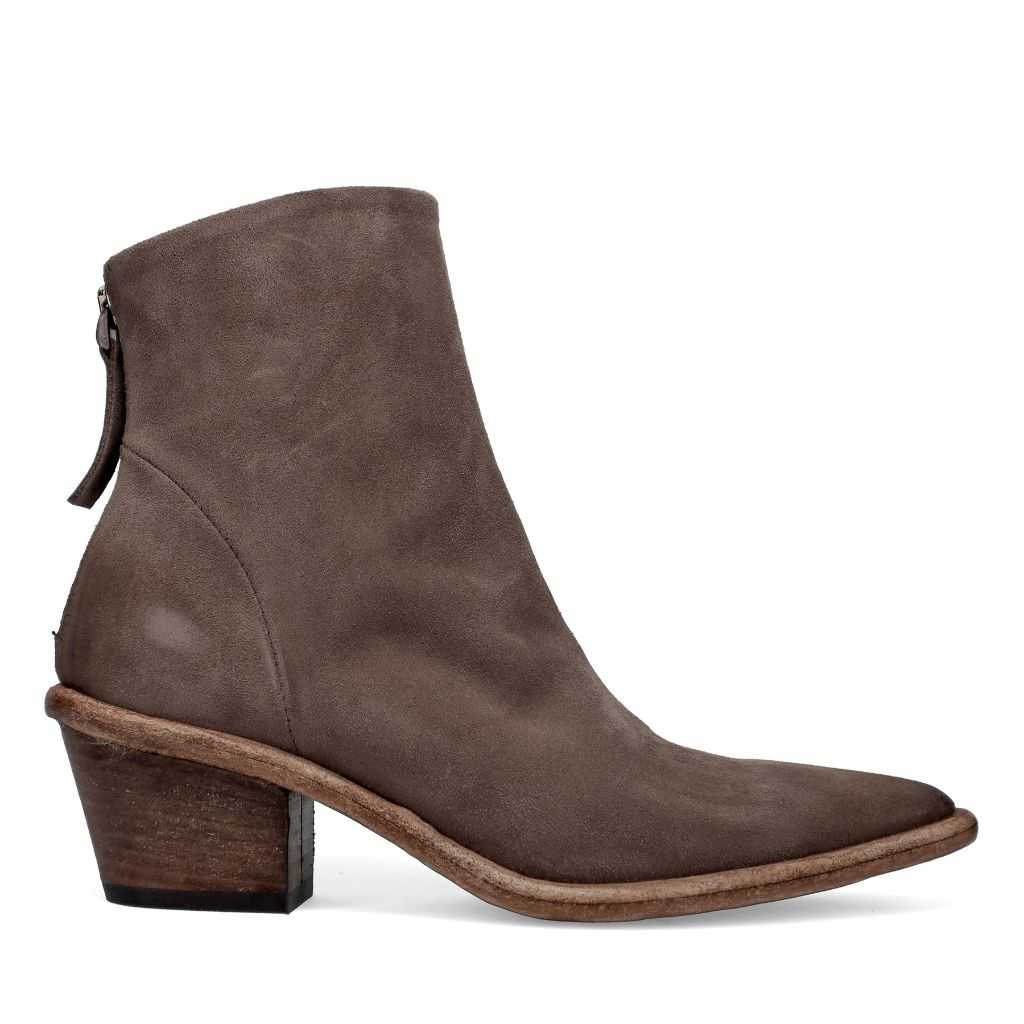 HISTORY541 - Stivaletto texano History541 Alice in morbido suede tortora con tacco medio
