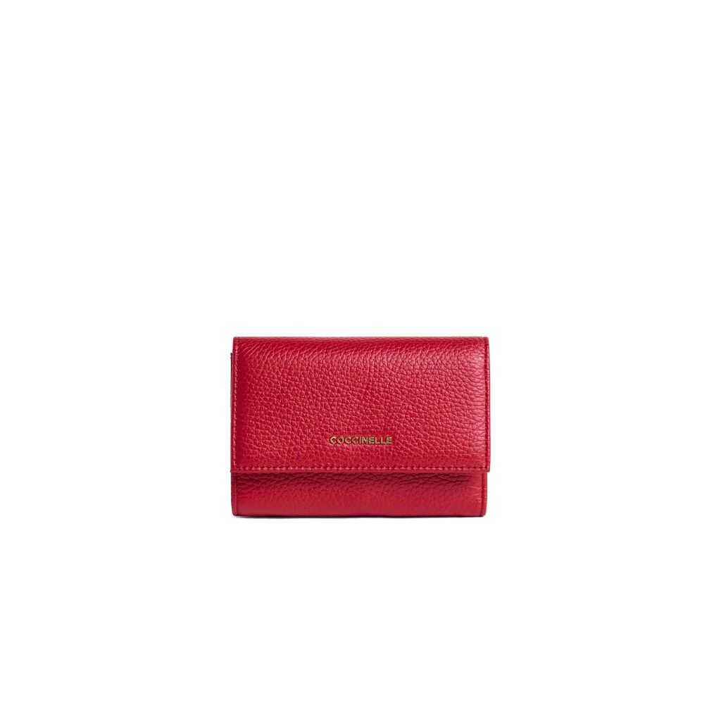 COCCINELLE - Portafoglio medio Coccinelle Metallic in pelle a grana naturale rosso scarlatto