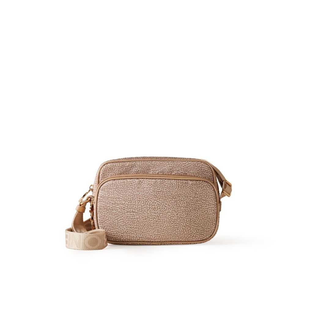 BORBONESE - Borsa piccola a tracolla Borbonese Camera Case in nylon e pelle beige
