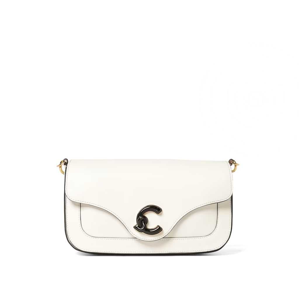COCCINELLE - Borsa media Coccinelle in pelle bianco perla con logo C-Me in resina nera