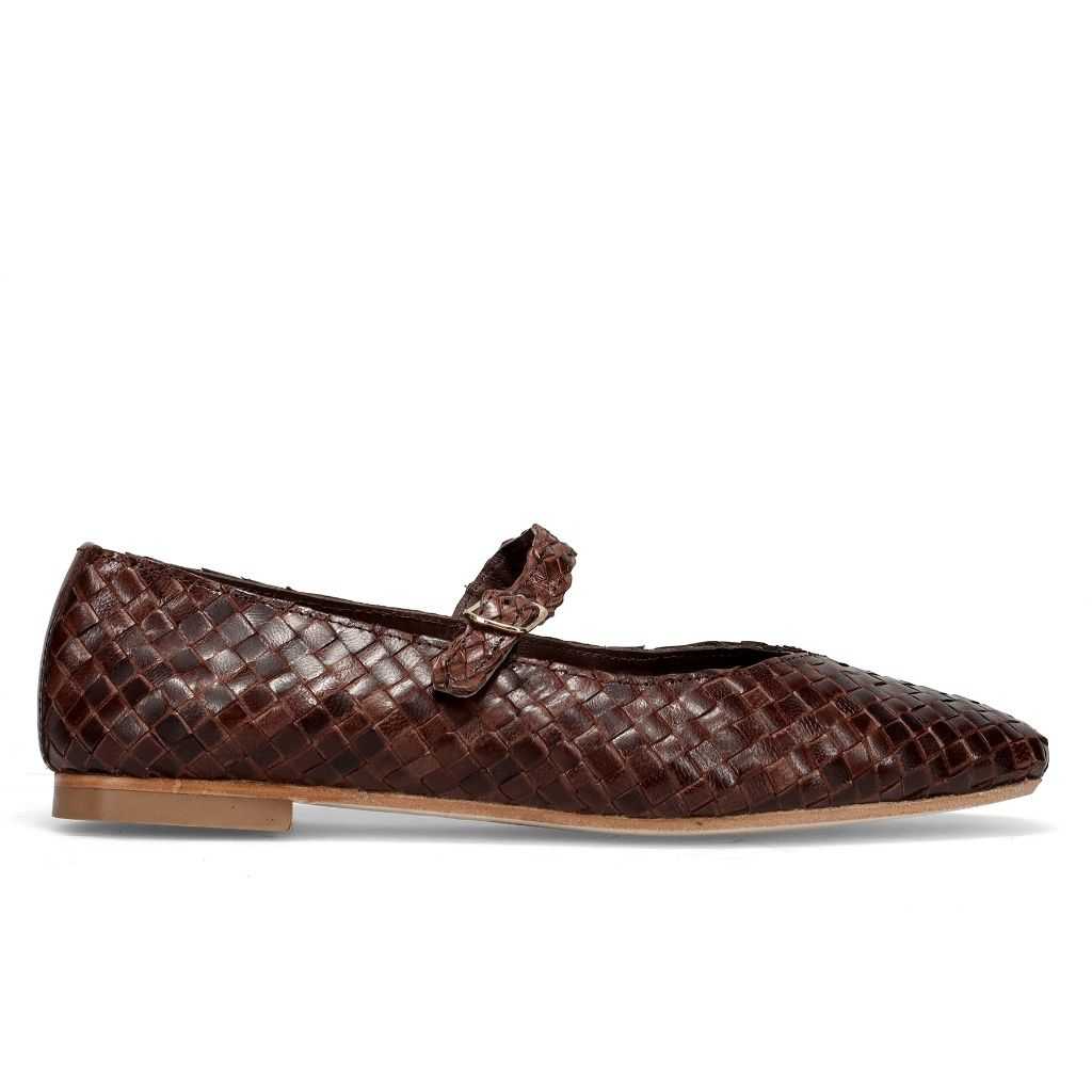 CRISTIN - Ballerina con cinturino Cristine Fulvia in pelle intrecciata marrone scuro