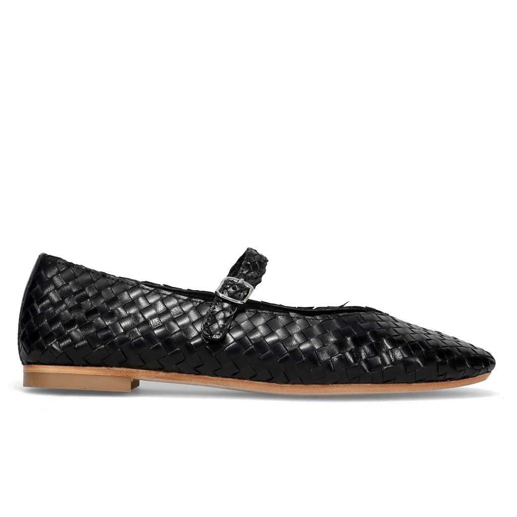 CRISTIN - Ballerina con cinturino Cristine Fulvia in pelle intrecciata nera