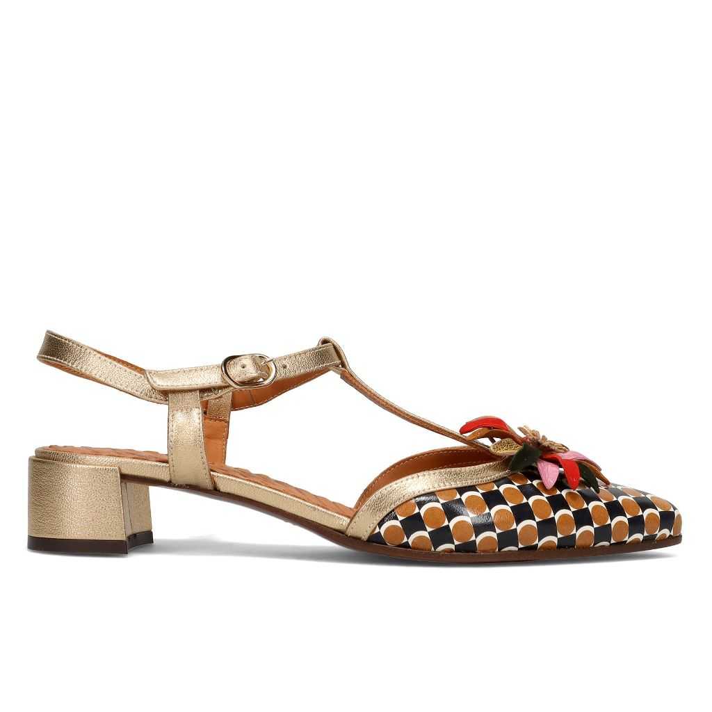 CHIE MIHARA - Scarpa Mary Jane Chie Mihara Heleni oro in pelle laminata con stampa e fiore multicolor