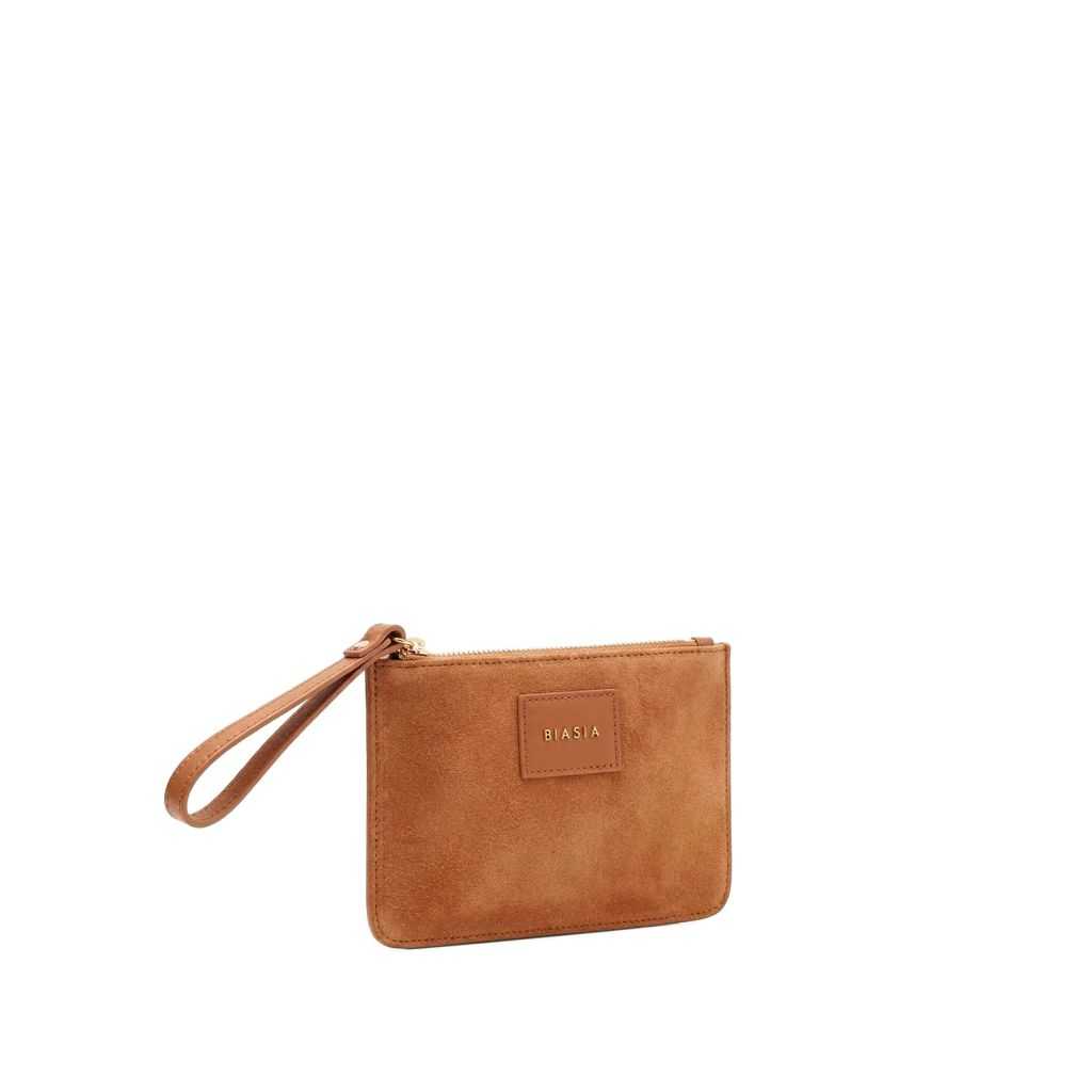 BIASIA - Portamonete piatto Biasia Mirai in camoscio color cuoio con tiralampo polsiera