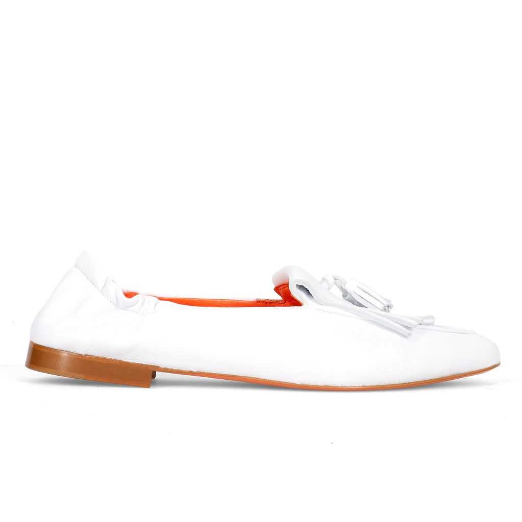 KROLL - Mocassino da donna Kroll in morbida pelle bianca con frangia e nappine
