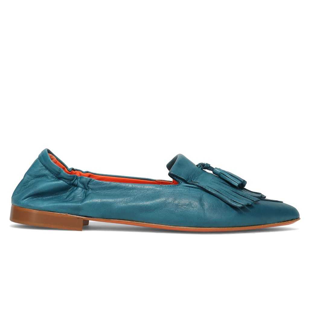 KROLL - Mocassino da donna Kroll in morbida pelle blu slavato con frangia e nappine
