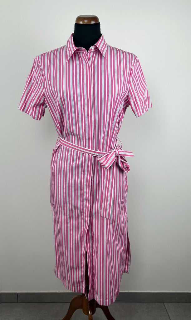 Sartoria Mobilia dal 1974- Abito Donna Sartoriale ART. 0201-0468 Abito Maxi Shirt con spacchi laterali, Mezza Manica con Tasche e Cintura Tessuto Cotone Righe Asimmetriche Fucsia, Giallo, Azzurro Vestibilità Regular Realizzata a macchina. Made in Italy