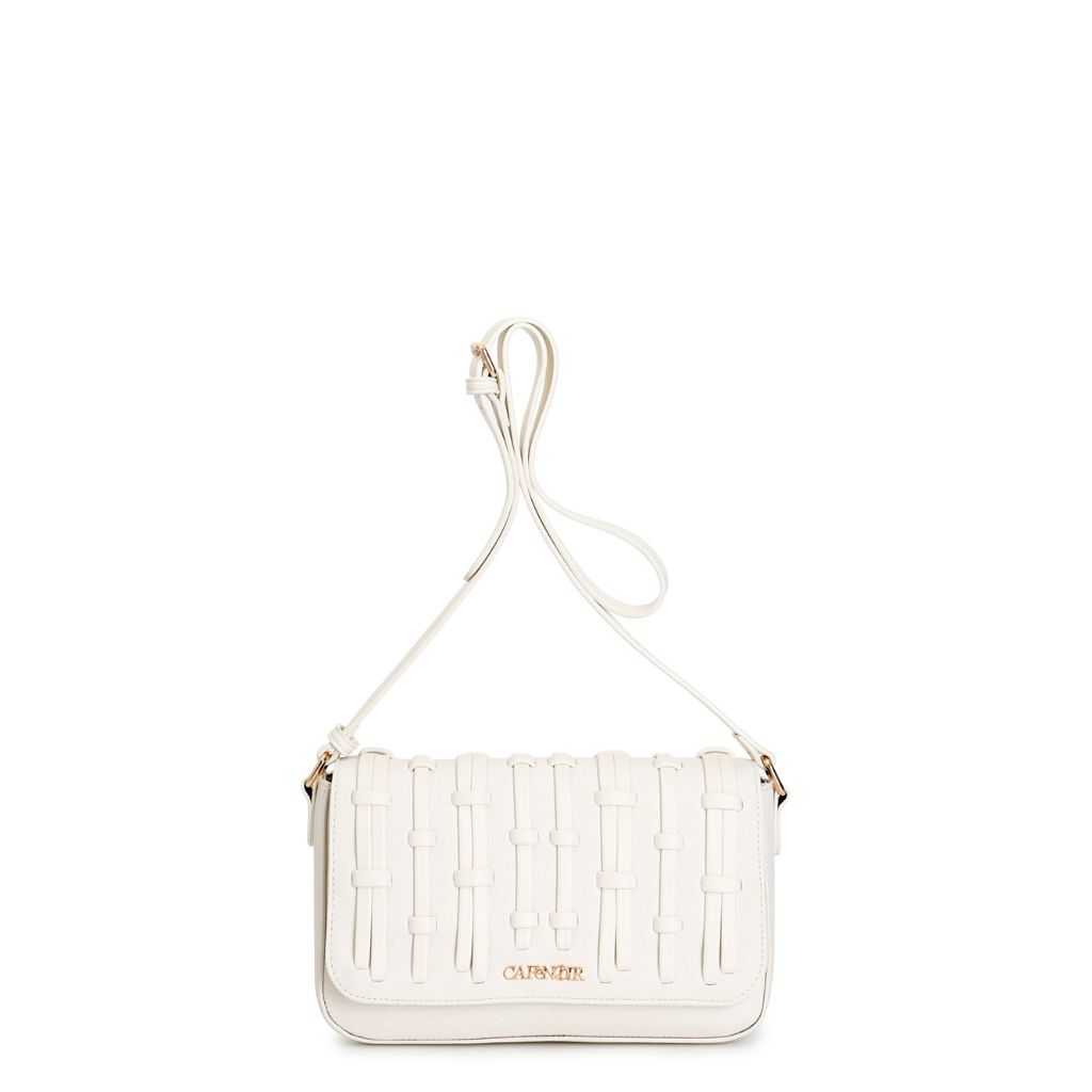Borsa a tracolla con pattina lavorazione con infilatura di mignon. unico scomparto con taschino con cerniera. chiusura a calamita. tracolla regolabile con fibbia.