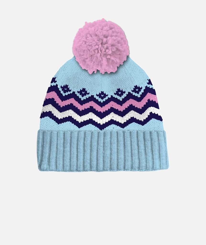 Berretto in maglia con pon pon, svolta a coste larghe con logo applicato.