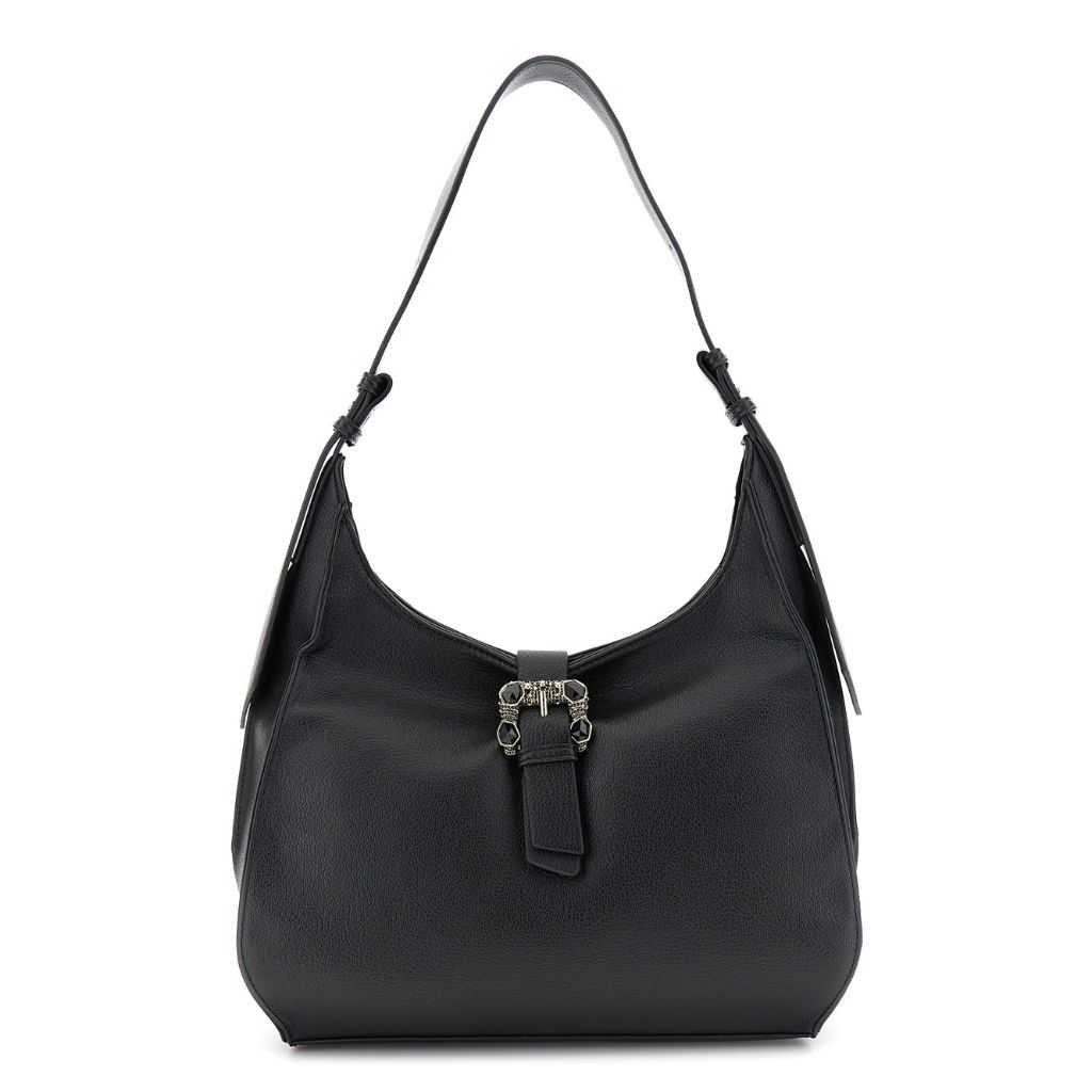 Borsa a spalla in similpelle con costole a contrasto. fibbia gioiello decorativa e tracolla regolabile. design raffinato per uno stile glamour quotidiano.