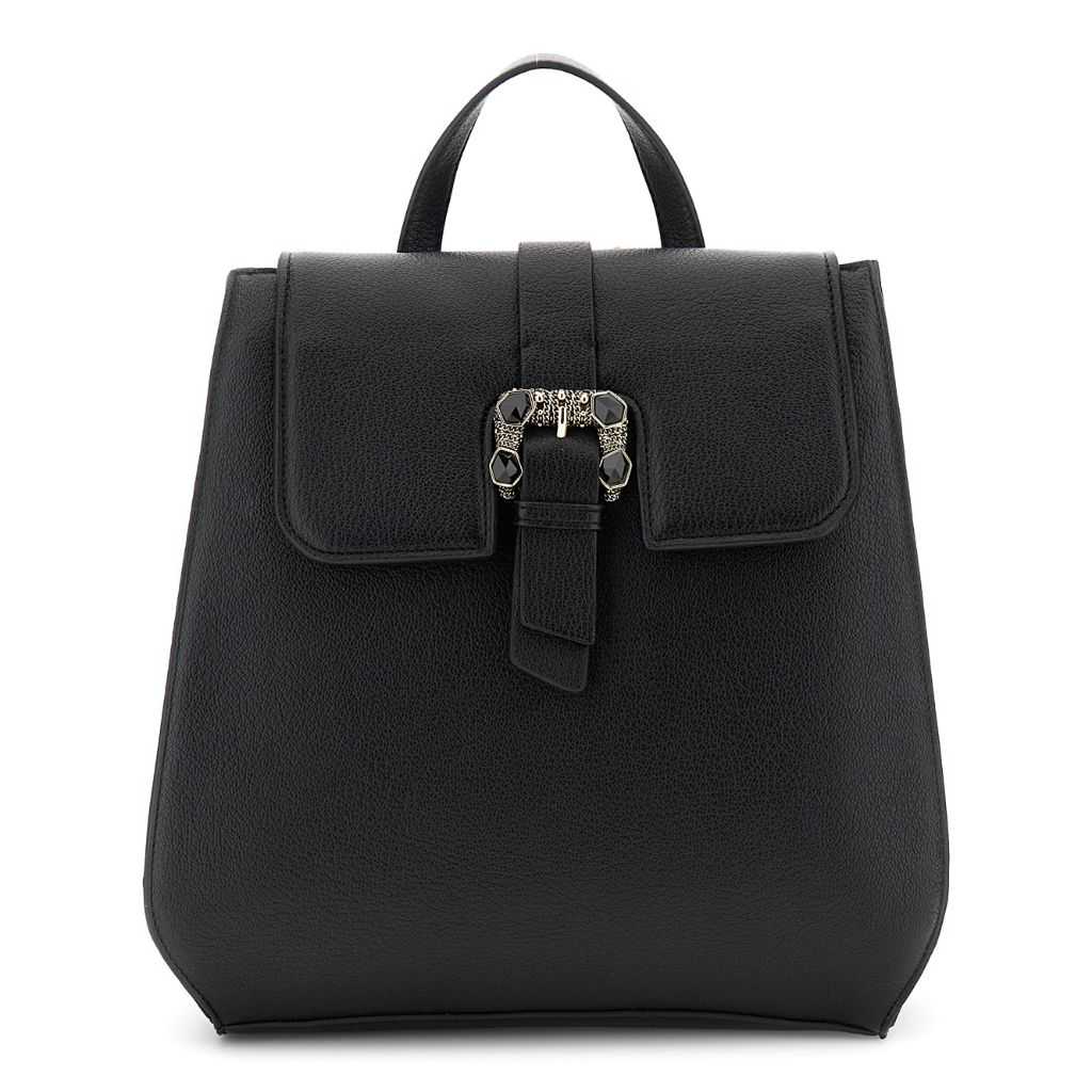 Zaino in similpelle con pattina dettagli a costole a contrasto e fibbia gioiello sul davanti. elegante e pratico perfetto per look urban chic.
