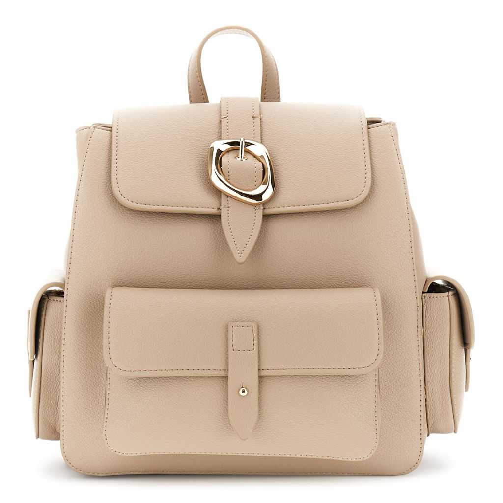 Zaino in similpelle effetto pelle con grana dotato di tasche multiple e pattina con fibbia asimmetrica. pratico spazioso e perfetto per un look grintoso