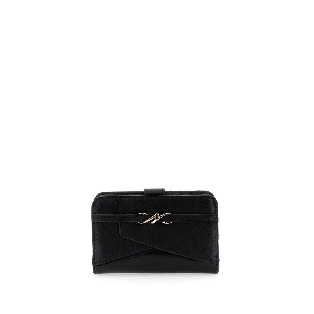 Portafoglio effetto pelle con lavorazione patchwork e logo in metallo vano portaspiccioli con zip.