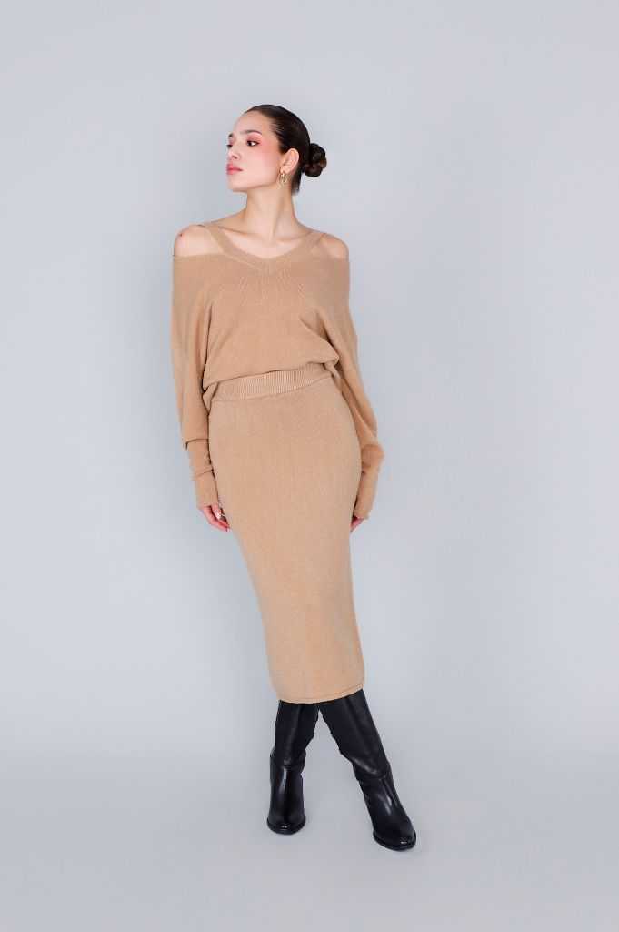 Gonna longuette in filato misto viscosa ideale per look casual e versatili. taglio regolare e tessuto caldo e confortevole. la modella è alta 172 cm e indossa la taglia s.