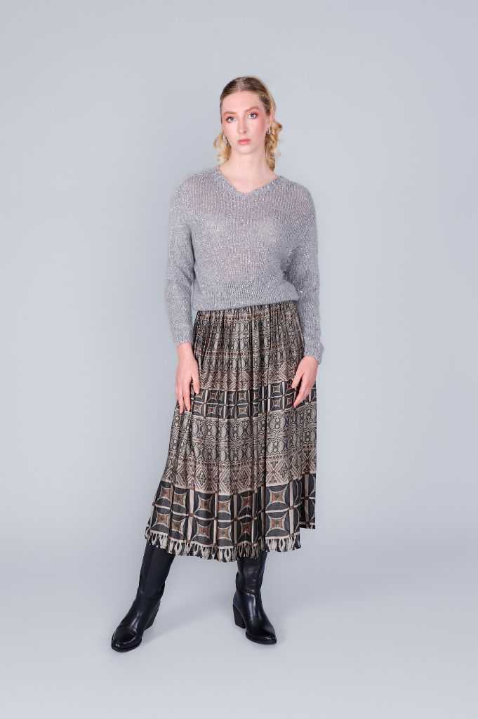Maglia girocollo con un tocco di luce grazie alle paillettes in un caldo e morbido filato misto mohair. look casual e fit regolare per un comfort assoluto. vestibilità regular. la modella è alta 174 cm e indossa la taglia s.