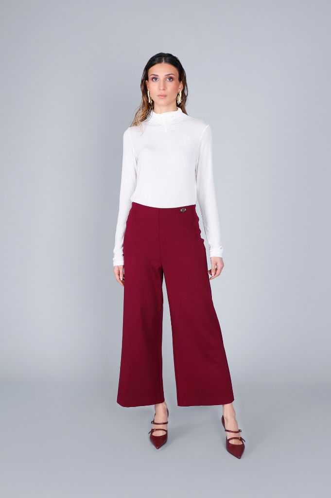 pantaloni gamba ampia tessuto elasticizzato burgundy